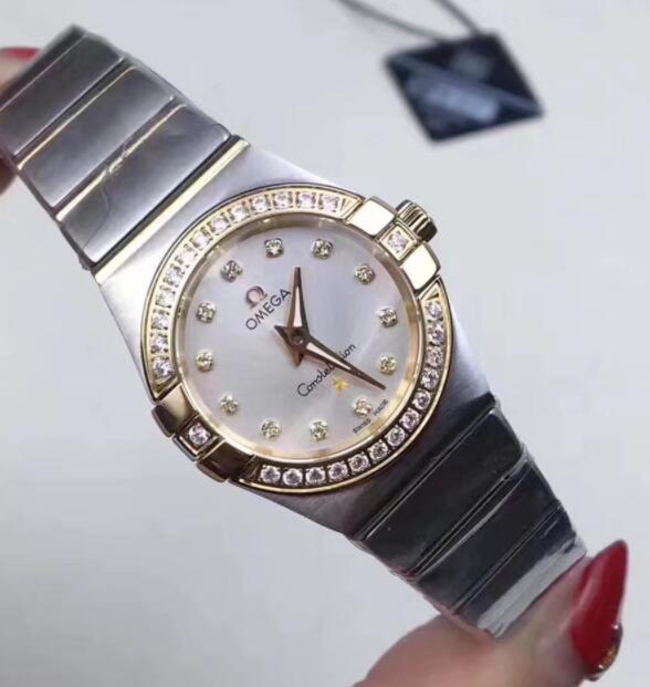 オメガ石英光沢加工と艶消しのレディース、直径は27mmがあって、24mm2種類の選択、スイスは石英チップ、316L精密な鋼、サファイアのクリスタルガラス鏡映面を輸入します